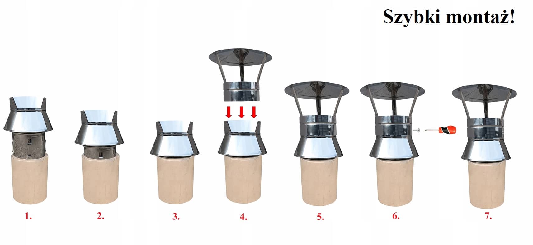 Na innych naszych aukcjach występują stożki w innych kolorach oraz wymiarach.Możliwość ścignięcie samego daszku bez konieczności wyciągania stożka z komina ceramicznego. Daszek i stożek to dwa osobne elementy, które należy ze sobą skręcić wkrętemZalety stożka
