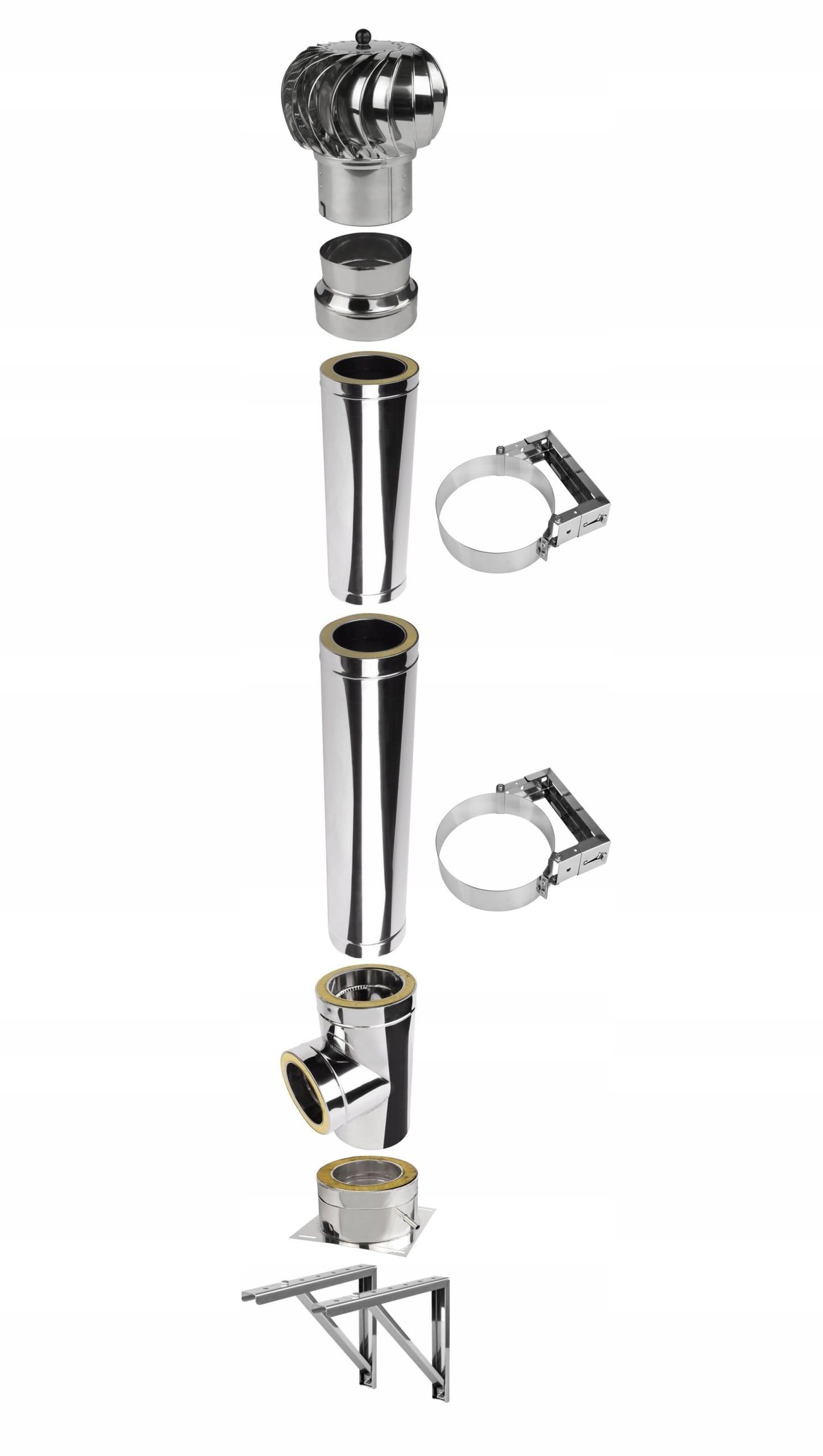 Wykonane w cau0142ou015bci z blachy nierdzewnej zapewniaju0105 odpornou015bu0107 na szkodliwe warunki spalinowe oraz ru00f3u017cne warunki atmosferyczne. W przypadku gdy chcemy odstawiu0107 komin dalej od u015bciany, mou017cna zakupiu0107 specjalne wsporniki, ktu00f3re przedu0142uu017caju0105 obejmy na odpowiedniu0105 du0142ugou015bu0107.
