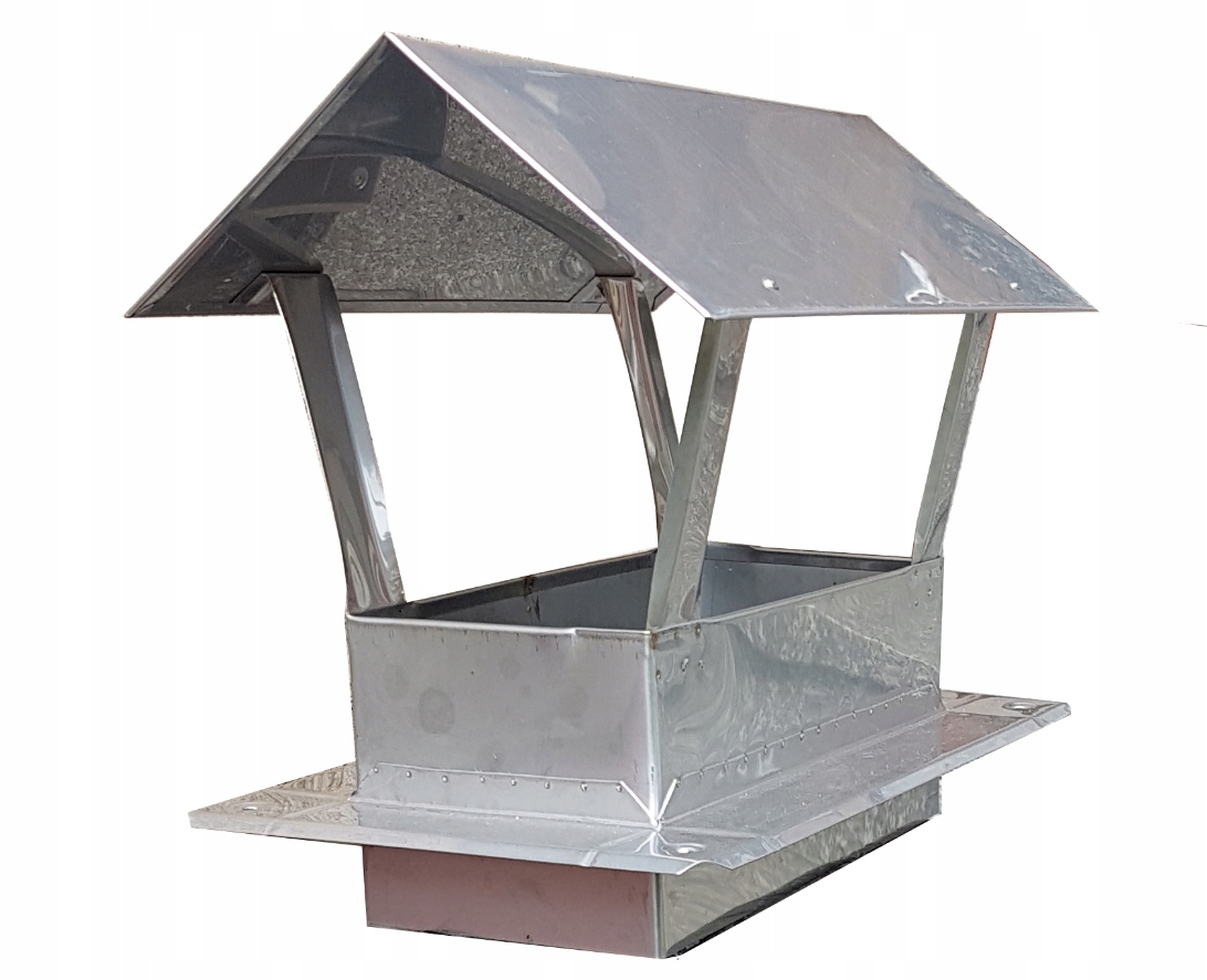 Daszek kominowy…Wykonany z blachy nierdzewnej kwasoodpornej. Zastosowanie nasady ma na celu ochronę wewnętrznej części komina przed opadami atmosferycznymi, poprawienie estetyki zakończenia systemu komina oraz odstraszenie potencjalnych intruzów np. ptaki.Montaż odbywa się poprzez zakotwienie 4 kołków rozporowych, a następnie przykręcenie podstawy, śrubami.Daszek jest bardzo solidny (widać na zdjęciach).Wysokość łapek jest idealnie dostosowana do każdego komina – nie blokuje, wydobywających się spalin.Na pozostałych naszych aukcjach, są również nasady obrotowe (montowane bezpośrednio na czapkę komina) oraz nasady o innej średnicy i przeznaczeniu.